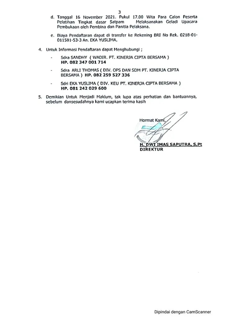 Pendaftaran diklat satpam kualifikasi gada pratama angkatan 53 pt.